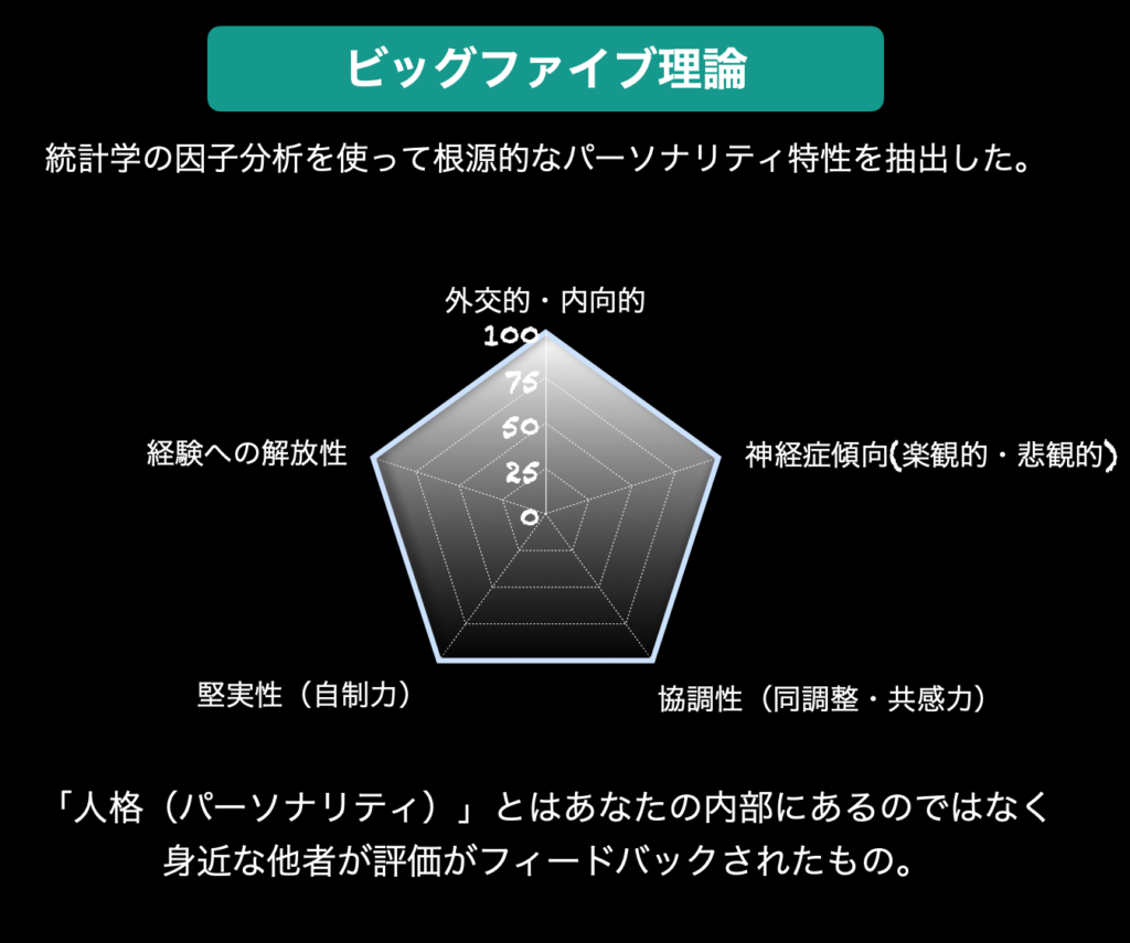 「私はこんな性格だ」と自分で思っていることと、周りの人があなたに対して抱いている印象は、時に違うことがありますよね。ビッグファイブ理論では、あなたの性格やパーソナリティは、他者があなたを見た時に評価する「印象」であると考えます。