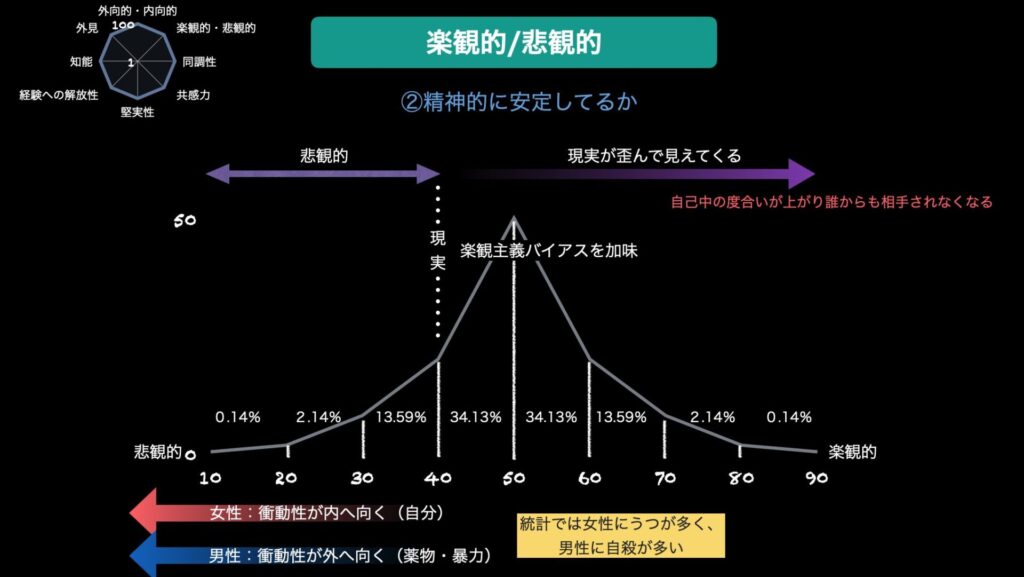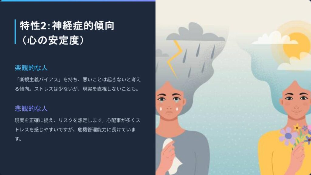 2. 神経症的傾向(楽観性 vs 悲観性):心の安定度