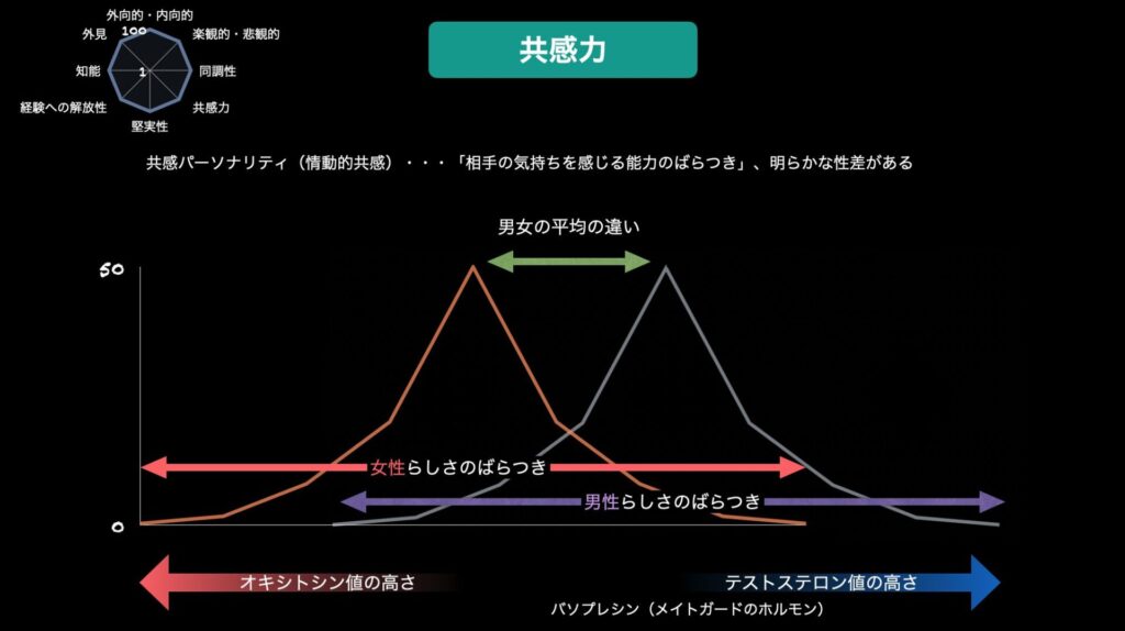 「共感力」とは、文字通り相手の気持ちを感じ取る能力のことです。この能力には男女で大きな違いがあることが統計的に分かっています。一般的に、女性は共感力が高い傾向にあり、男性は低い傾向にあります。そのため、「どうして分かってくれないの?」という男女間のやり取りは、この共感力の差から生じることがほとんどです。男性に女性のような共感を求めるのは、ほぼ不可能だと言えるでしょう。