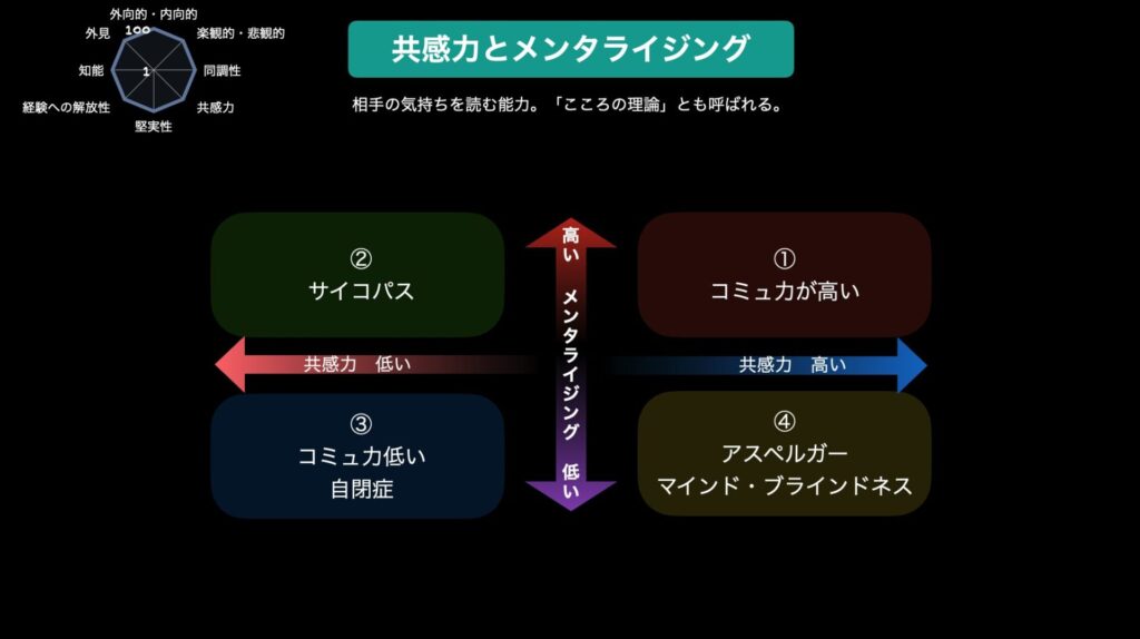 共感力とメンタライジングの組み合わせでわかる4つのタイプ
