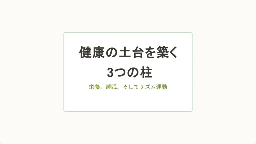 健康の土台を築く3つの柱:栄養、睡眠、そしてリズム運動