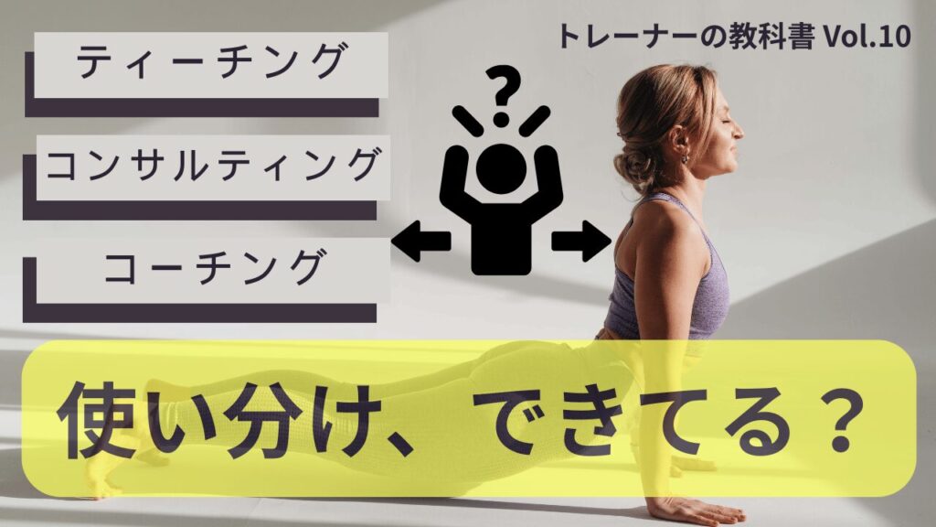 【人気トレーナーは使っている】クライアントの変容を促すコーチング、ティーチング、カウンセリングの使い分け方
