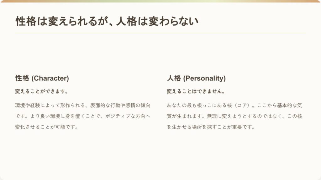 自分を変えたいと思った時、知っておくべき大切なことがあります。それは、「性格」と「人格」の違いです。
