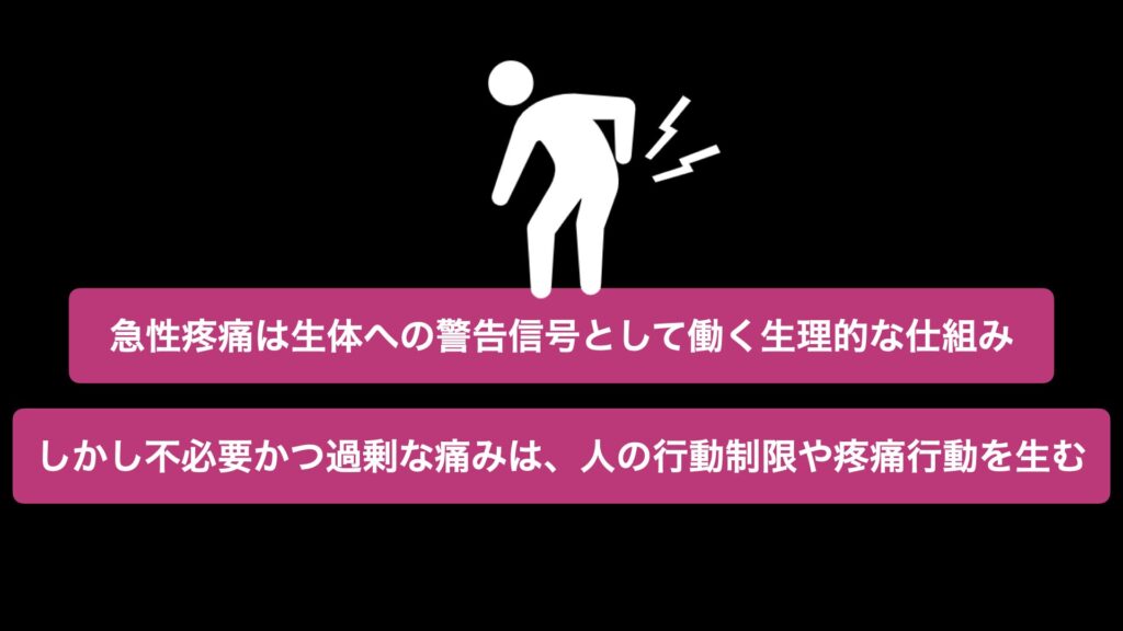 前述の通り、痛みには急性痛と慢性痛の2種類があり、それぞれ対処法が大きく異なります。
