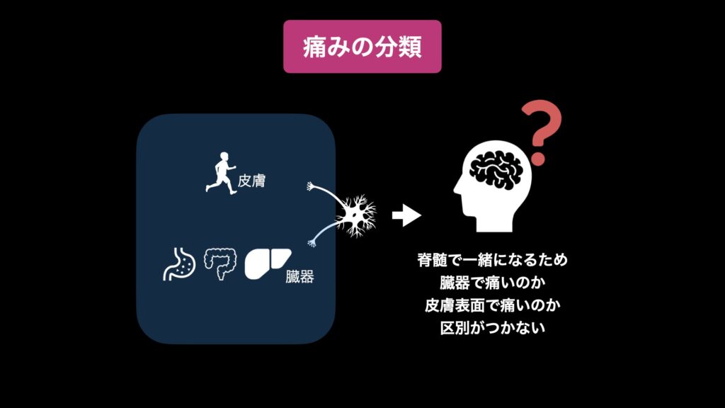 痛みは、発生源によって大きく「体性痛」と「内臓痛」に分けられます。
